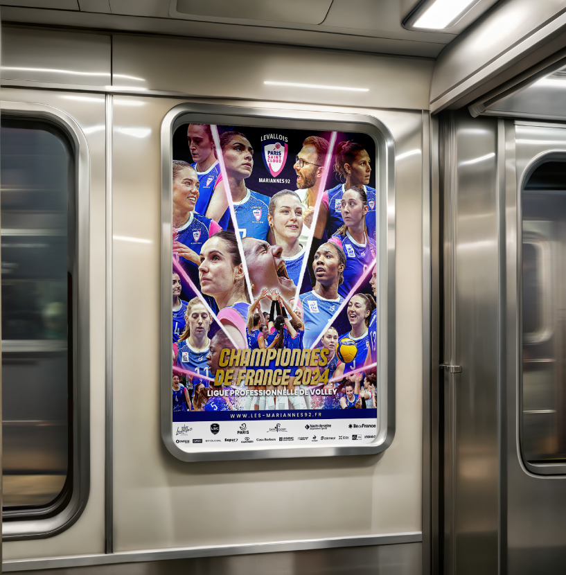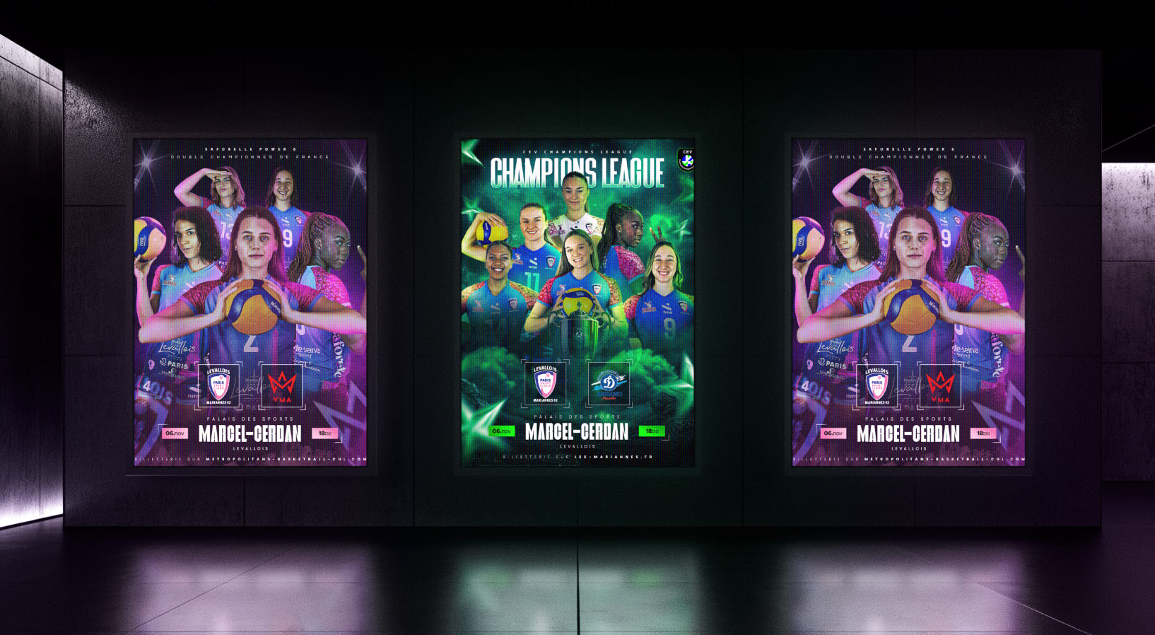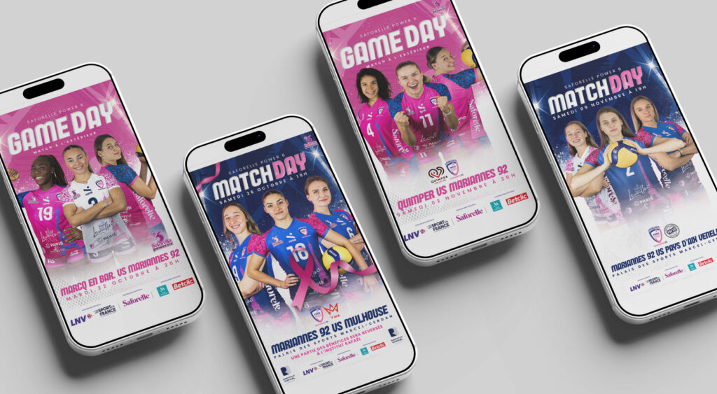 Tcheel a réalisé une série de visuels digitaux pour dynamiser la communication des Mariannes 92. Des créations percutantes pour les réseaux sociaux mettent en avant les matchs, les MVP, les résultats et les offres du club. Des visuels ont également été conçus pour les écrans diffusés dans les lieux publics de Levallois. En complément, Tcheel a produit une vidéo backstage lors du shooting des nouveaux maillots, offrant un aperçu exclusif des coulisses et renforçant l’image du club auprès des supporters.